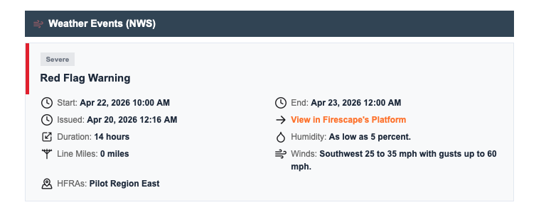 KCEC High Wind Alert & Elevated Fire Danger – Today April, 22, 2026 and Tomorrow, April 23, 2026