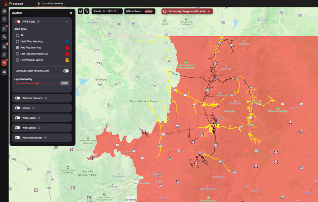 Forecasts indicate wind gusts up to 60 mph, creating conditions that significantly increase the risk of wildfires and potential power outages.