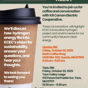 🌟 Thank you for joining us at Coffee with KCEC in Questa and Taos! 🌟 We’re grateful you took the time to share coffee, conversation, and your thoughts on our hydrogen energy project ☕⚡. Your input helps shape KCEC’s vision for a cleaner, more sustainable future. Couldn’t make it or have more questions? KCEC will ...